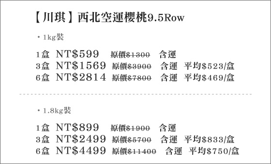 商品名稱:【川琪】 西北空運櫻桃9.5Row